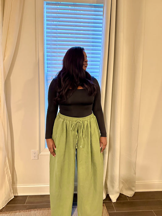 Posh Wide Leg Denim Jeans (Olive)