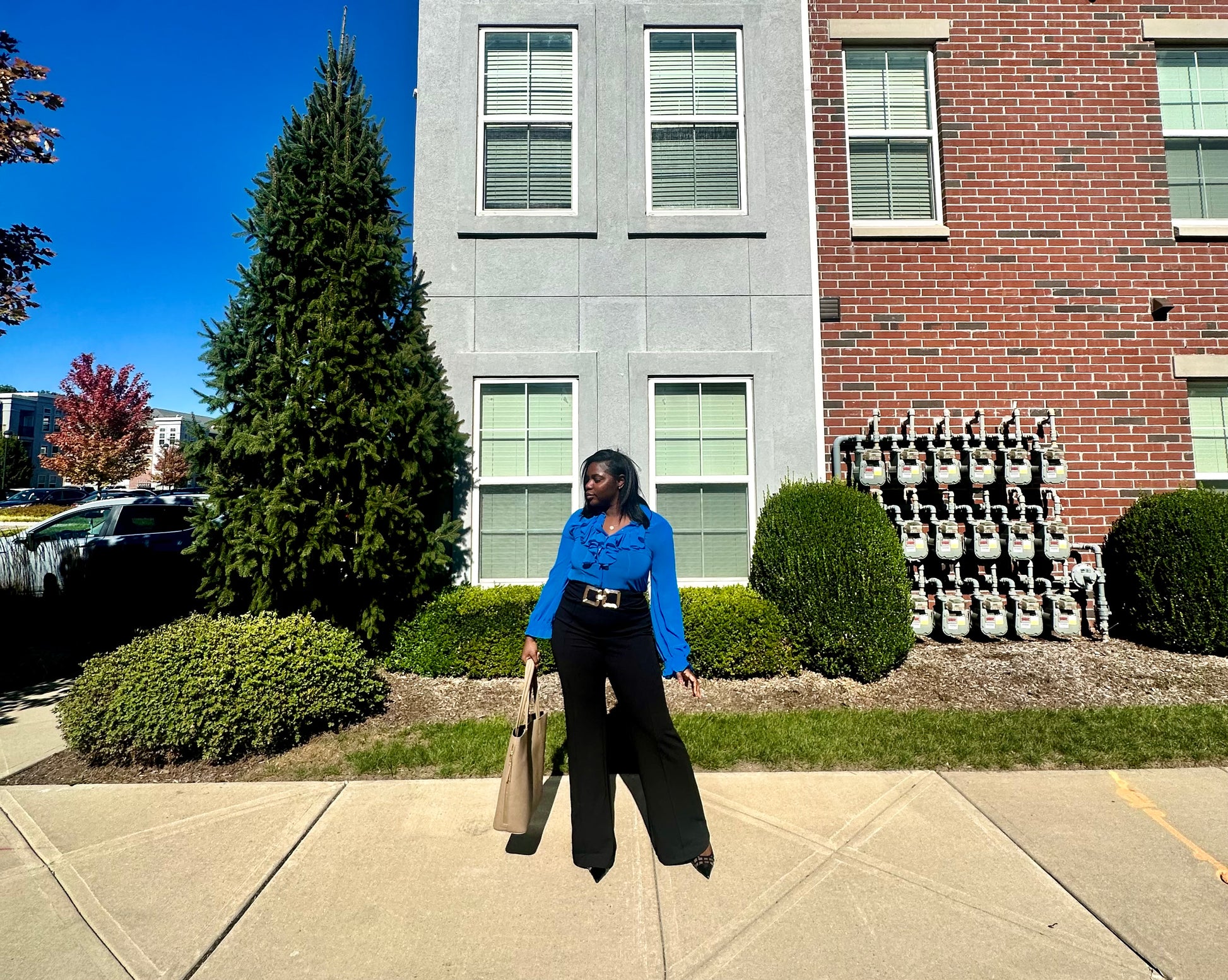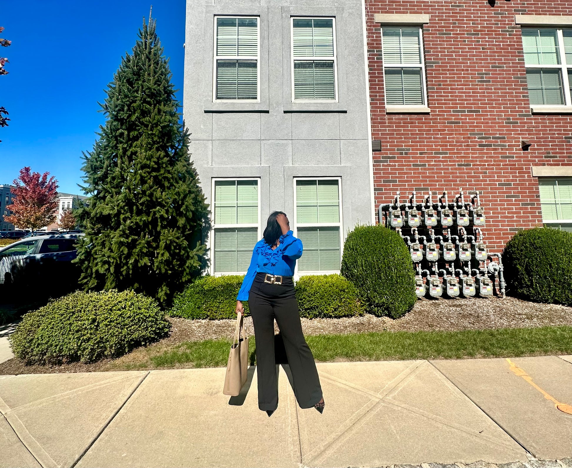 Introducing the Tailored Posh Pants - a stylish twist on professional pants! With a sleek gold belt attachment, these pants are sure to elevate any outfit. Perfect for the fashion-forward professional. Wide legged with great stretch. Featuring a back zipper.