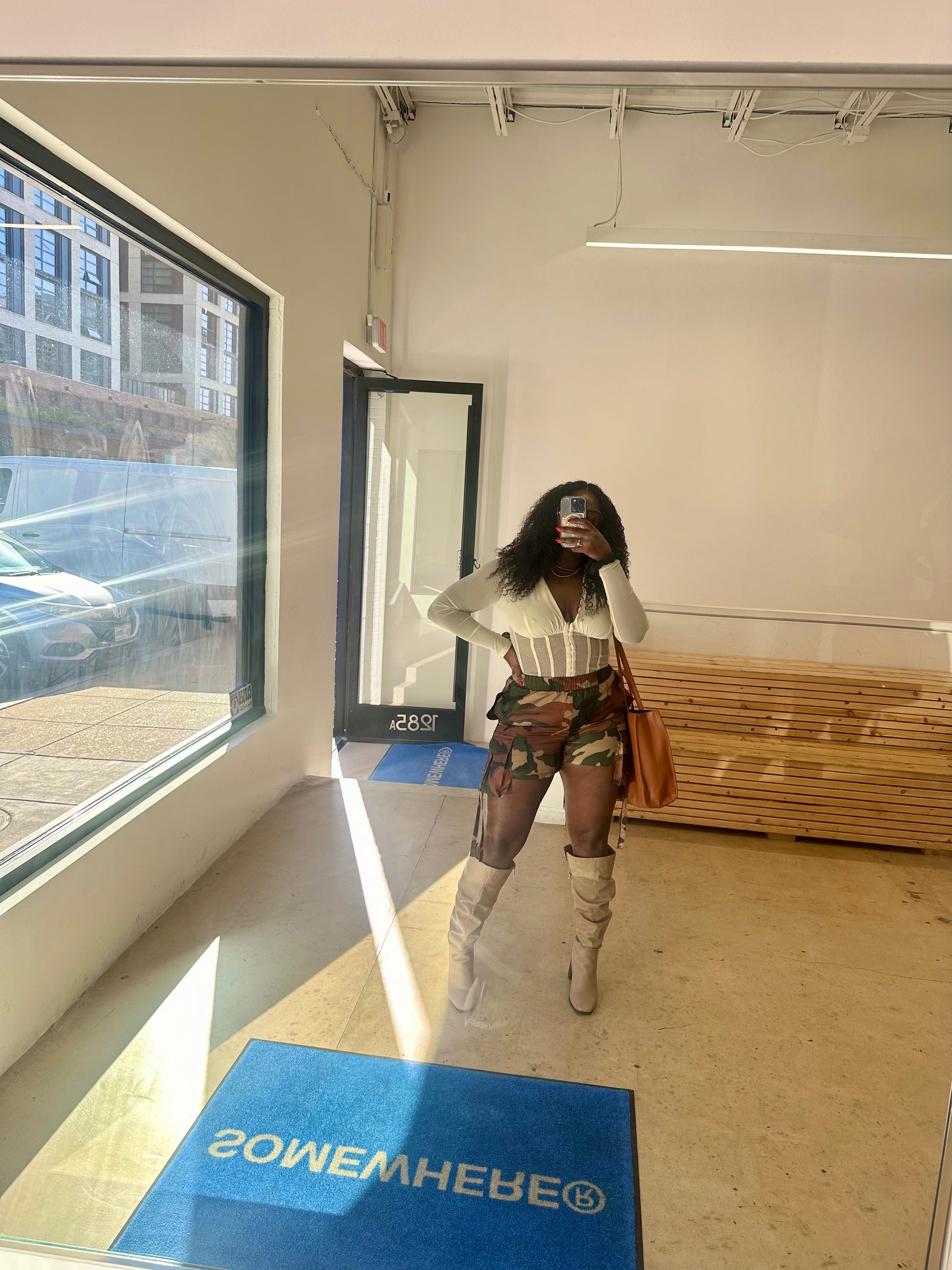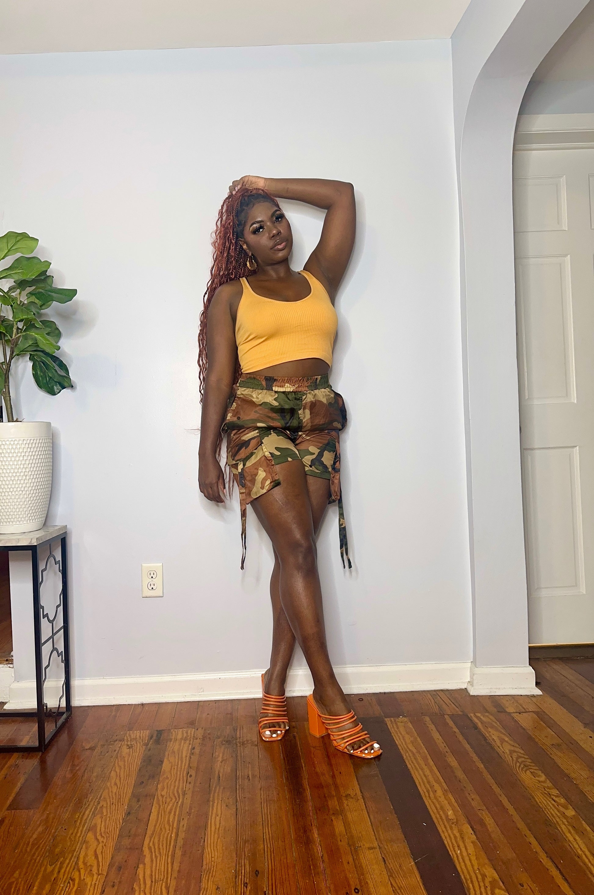 Windbreaker camo shorts with pockets. Elastic waist band for stretch. Fits true to size. Model is wearing a size medium.