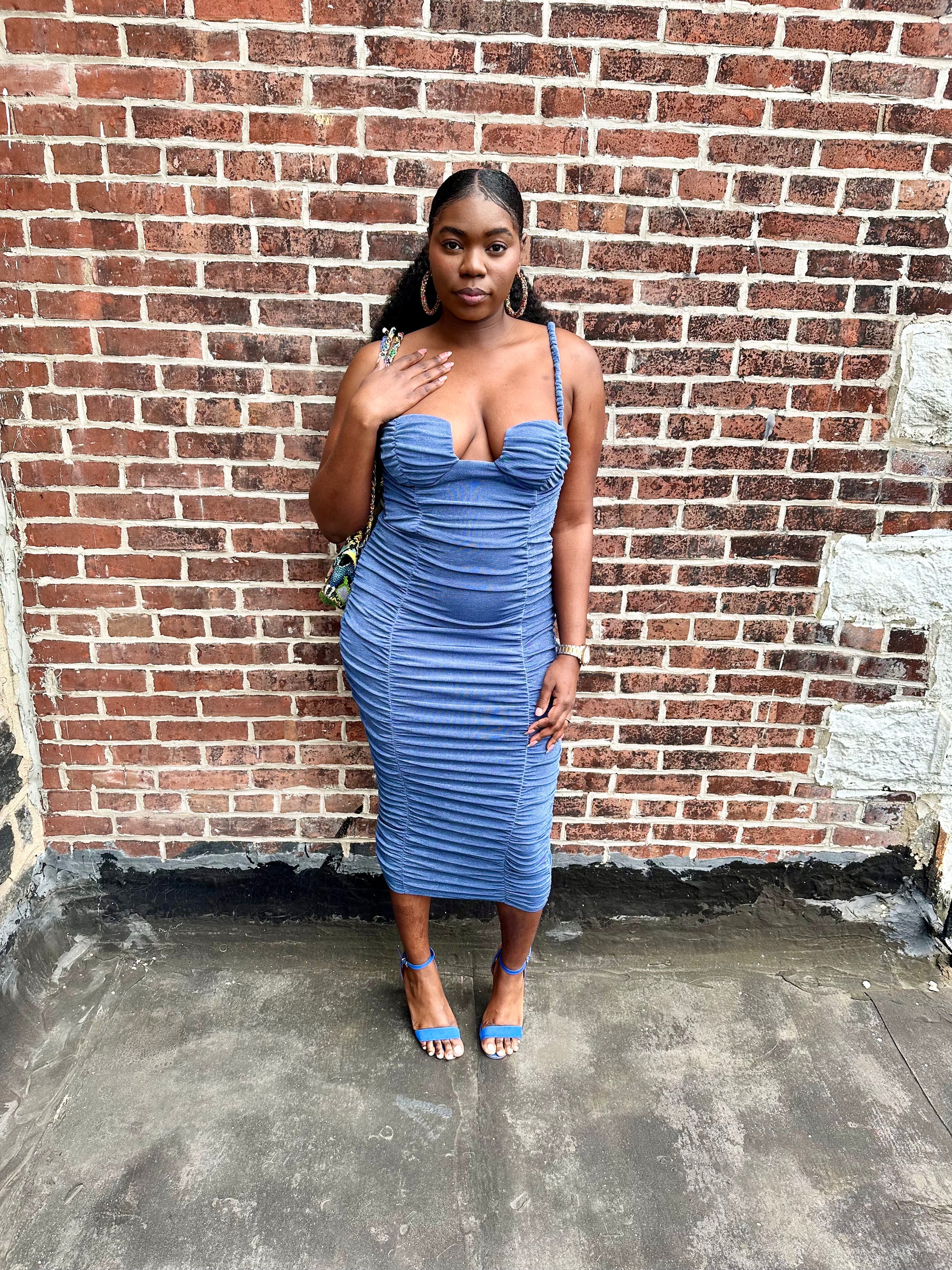 Perfect for date night or a night out with the girls! Our new Vanity Dress is classy with a splash of sexy. The ruched details on this midi dress takes the look to the next level!! Elastic straps with great stretch. Go a size down if you want a snatched look! Model is wearing a small.